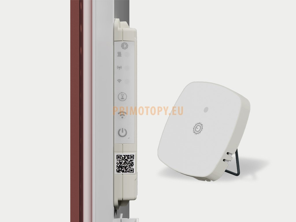 Součástí každého sálavého infrapanelu ECOSUN CR-WiFi je integrovaný WiFi modul a také bezdrátové čidlo teploty (napájeno knoflíkovou baterií CR2032). Čidlo slouží také jako "dálkový ovladač" pro operativní zapnutí topného panelu. WiFi box a RF senzor jsou spárovány už z výroby, pro spojení stačí do RF senzoru vložit baterii CR 2032 (součást balení).