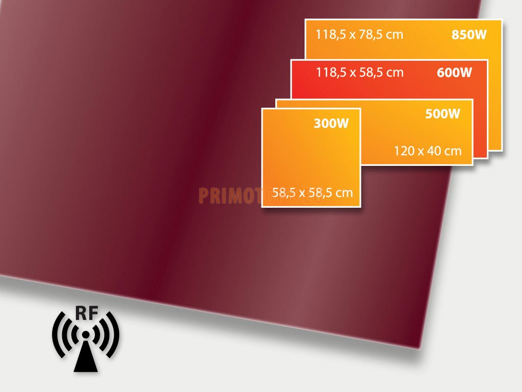 ECOSUN 600 GS+ Wine Red, sálavý skleněný panel s bezdrátovým RF přijímačem 600W